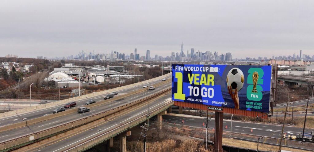 Un anuncio conmemora que solo falta un año para que se celebre el Mundial de 2026. Foto: Comité Anfitrión de la Copa Mundial de la FIFA 2026 de NYNJ.