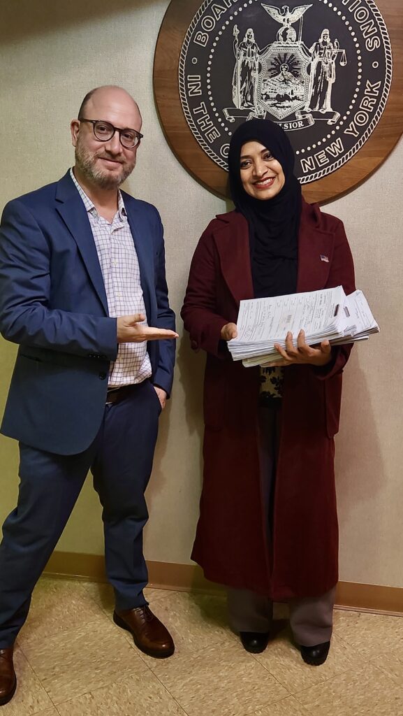Me postulo porque nuestra lucha colectiva necesita ser representada, escuchada y vista. Creo que nuestro gobierno y nuestros funcionarios electos pueden y deben hacer más para abordar nuestros problemas. Por eso, necesitamos a alguien como yo, de nuestra comunidad, con experiencia comprobada en medios de comunicación, salud, organizaciones comunitarias y de base, en defensa de derechos, con cargos electos, juntas comunitarias, lugares de culto, negocios locales y escuelas, para que nos guíe. Yo aporto abogacía efectiva, responsabilidad y transparencia. No solo lucharé por nosotros en Albany, sino que también prometo ofrecer servicios efectivos para los constituyentes, para que nadie tenga que enfrentarse solo a sistemas complejos o necesidades urgentes.